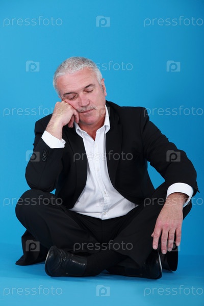 Засыпающий мужчина, сидящий со скрещенными ногами