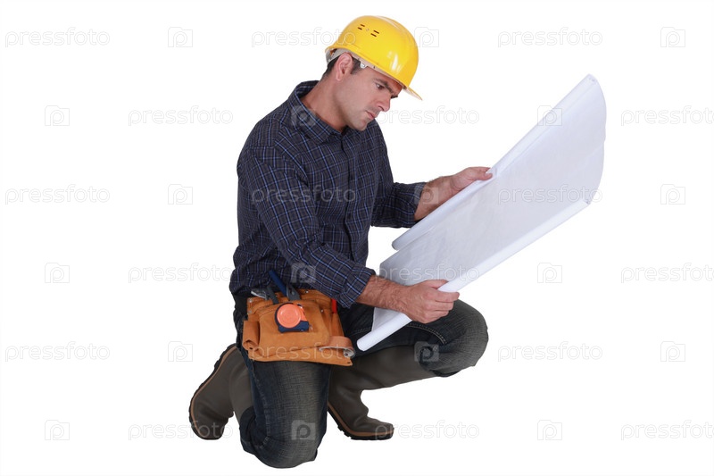 Недовольный строитель изучает план