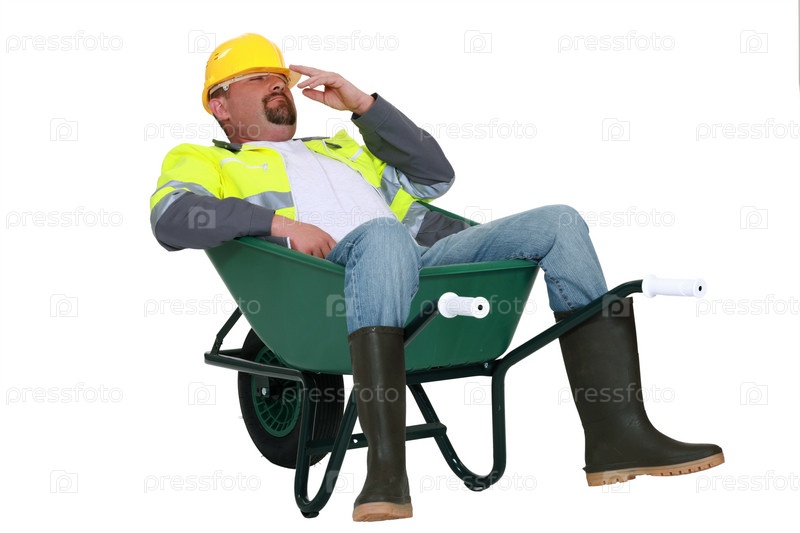 Рабочий лежит в тачке