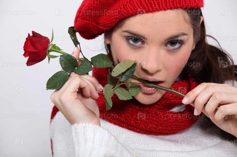 Брюнетка с розой во рту