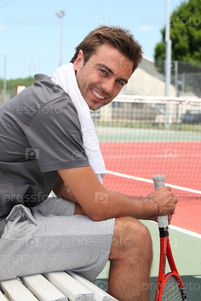 Теннисист, сидящий на скамье