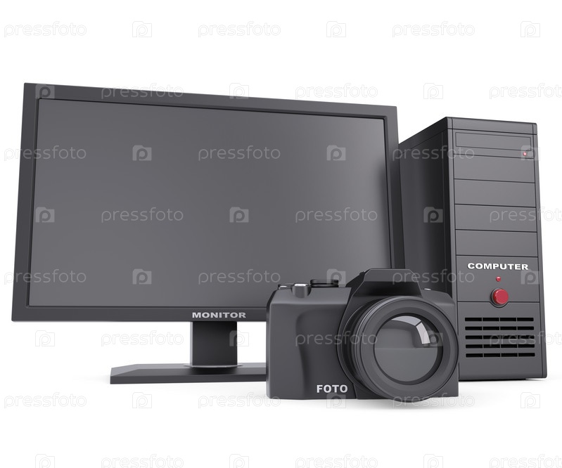 Системный блок, монитор и камера