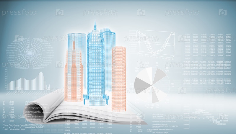 Здания в стиле хай-тек на синем фоне