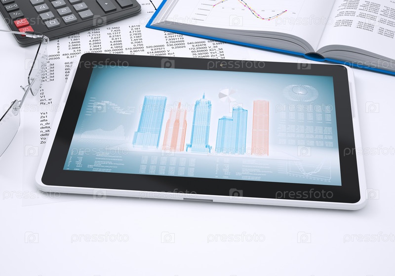 Книга, калькулятор, бумага и планшетный компьютер