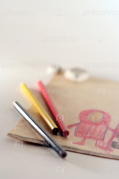Детский рисунок и цветные карандаши
