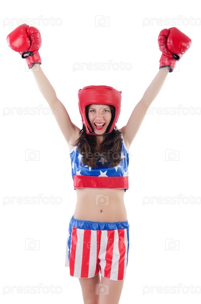Женщина-боксер в форме с флагом США