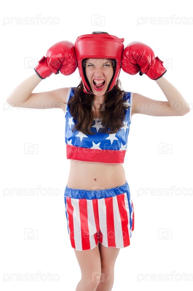 Женщина-боксер в форме с флагом США