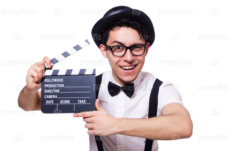 Забавный человек с хлопушкой
