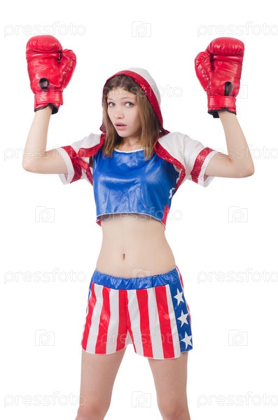 Женщина-боксер в форме с флагом США