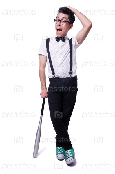 Забавный человек с бейсбольной битой