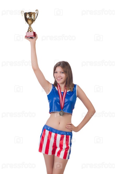 Женщина-боксер в форме с флагом США