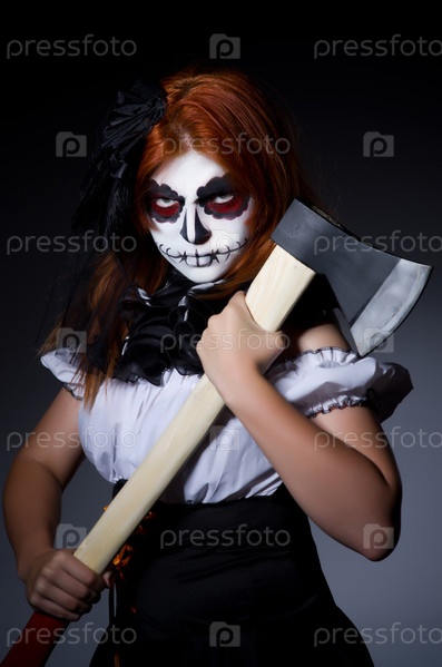 Женщина монстр с топором в темной комнате