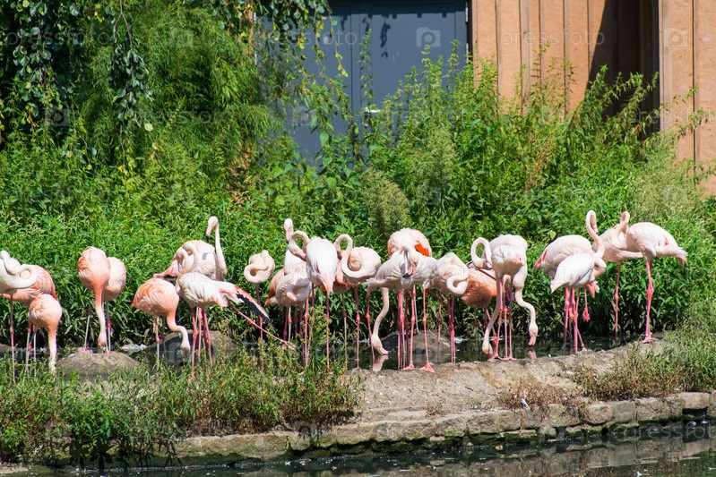 Розовые фламинго в яркий летний день