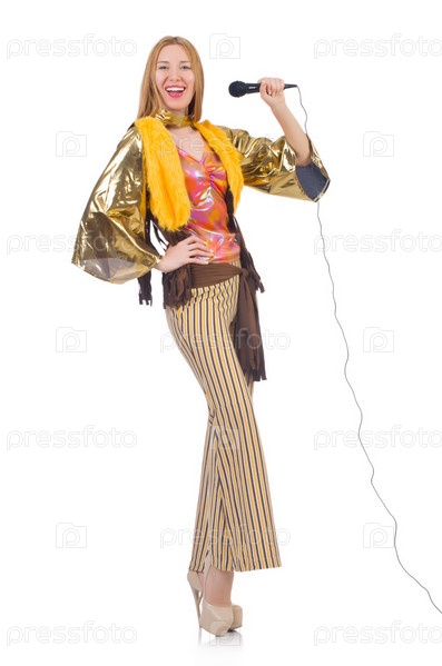 Женщина в испанской одежде с микрофоном