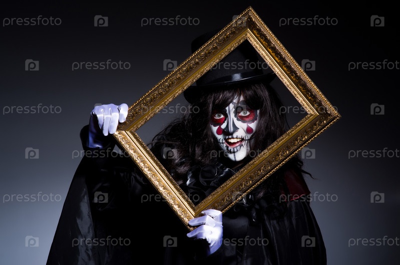 Монстр с фоторамкой в темной комнате