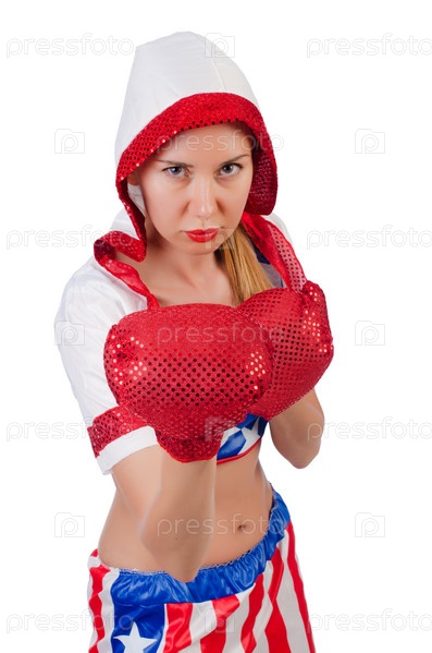 Женщина боксер, изолированная на белом фоне