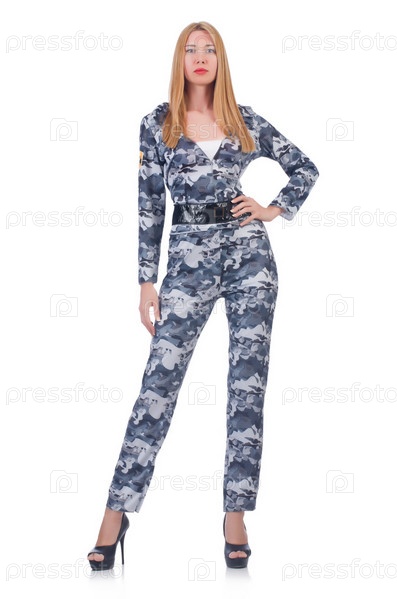 Женщина-солдат, изолированная на белом фоне