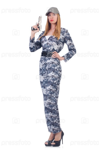 Женщина-солдат, изолированная на белом фоне