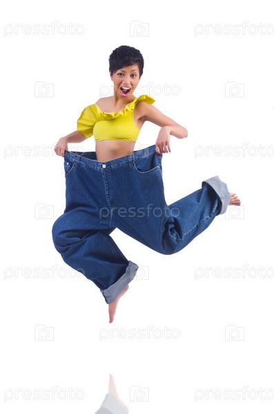 Женщина в концепции диеты с большими джинсами