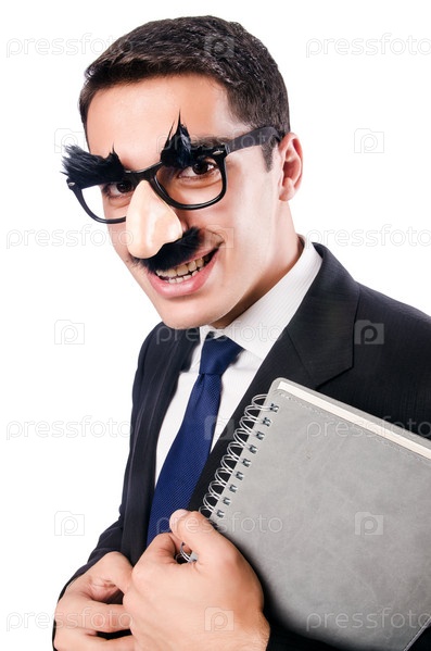 Смешной бизнесмен с бровями и усами
