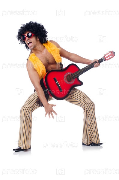 Гитарист, изолированный на белом