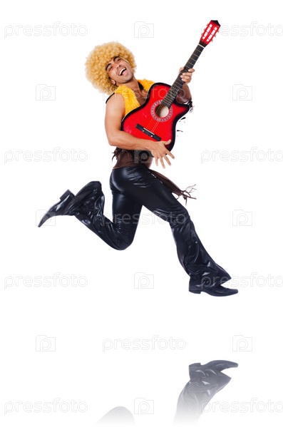 Гитарист, изолированный на белом