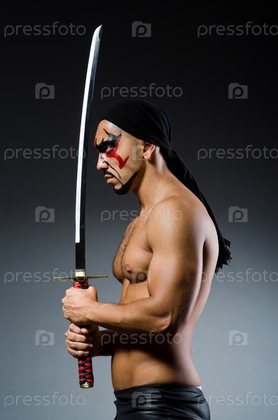 Мужчина с мечом и раскрашенным лицом