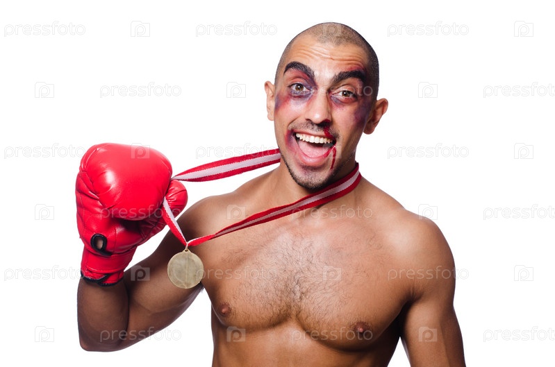 Избитый боксер, изолированный на белом фоне