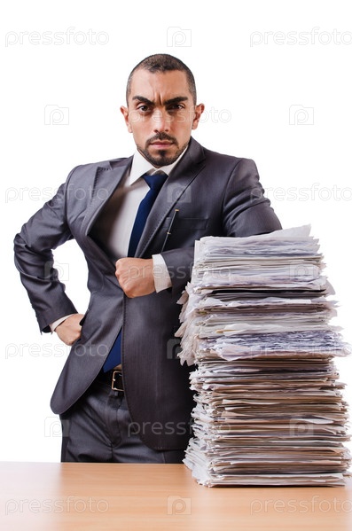 Мужчина, заваленный работой