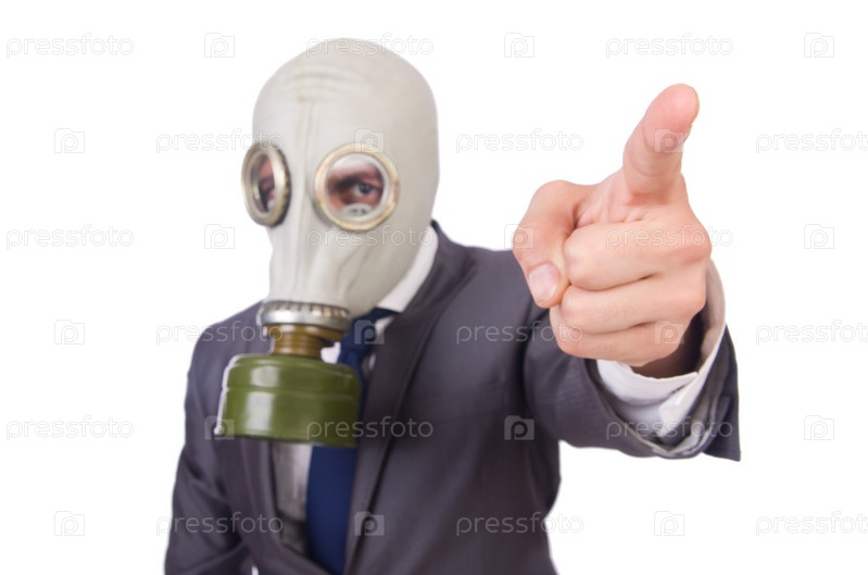 Бизнесмен в противогазе, изолированный на белом фоне
