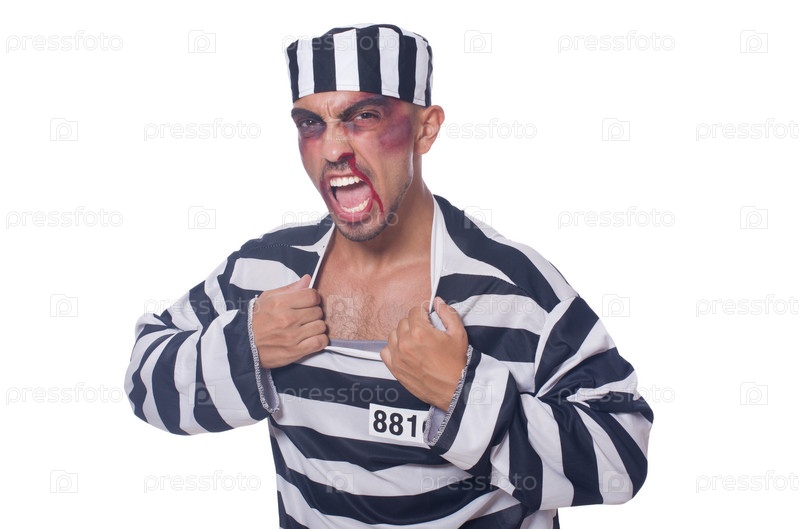 Заключенный с синяками на белом фоне