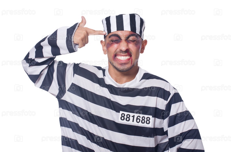 Заключенный с синяками на белом фоне