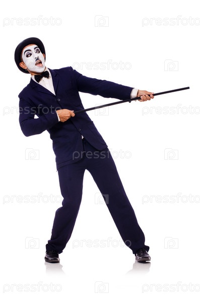Двойник Чарли Чаплина на белом фоне