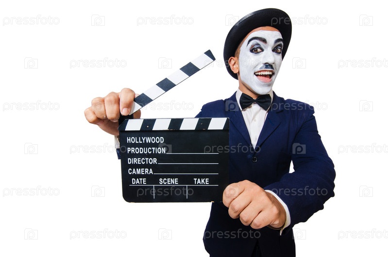 Человек с хлопушкой, изолированный на белом фоне