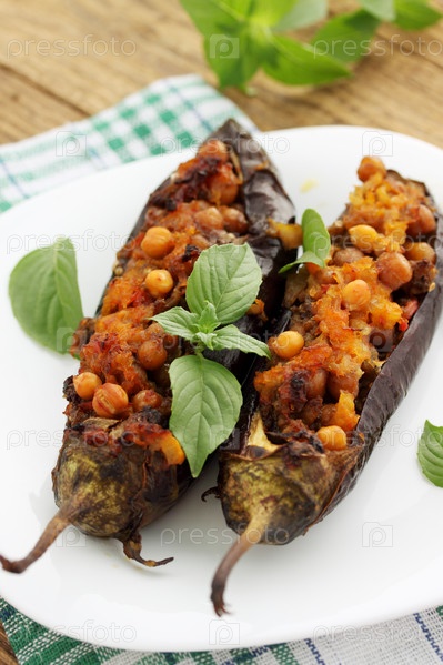 Запеченные баклажаны, фаршированные мясом, нутом и овощами