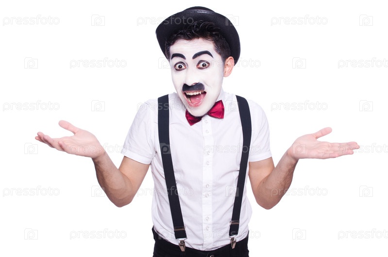 Двойник Чарли Чаплина на белом фоне