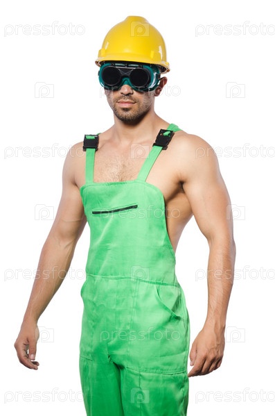 Мужчина в зеленом комбинезоне с очками