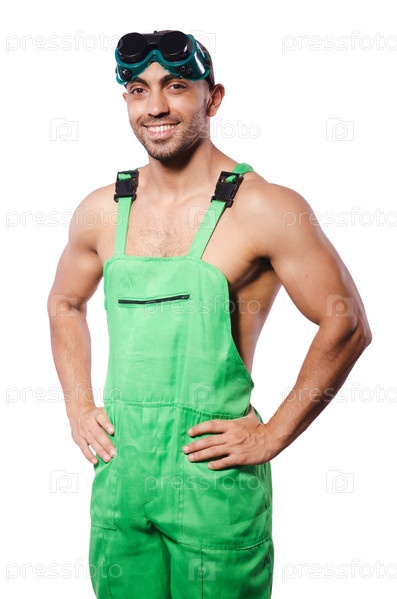 Мужчина в зеленом комбинезоне с очками