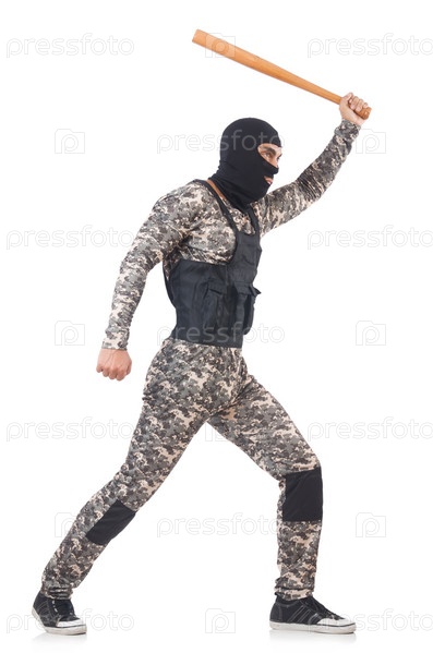 Солдат в камуфляже, изолированный на белом фоне