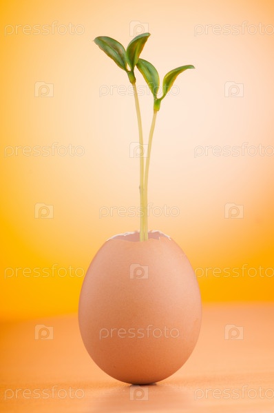 Яйцо с зеленой рассадой в концепции новой жизни