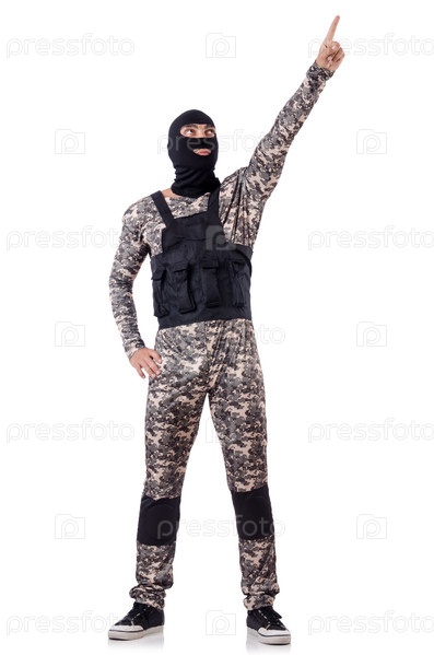 Солдат в камуфляже, изолированный на белом фоне