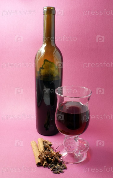 Глухое вино с пряностями на розовом фоне