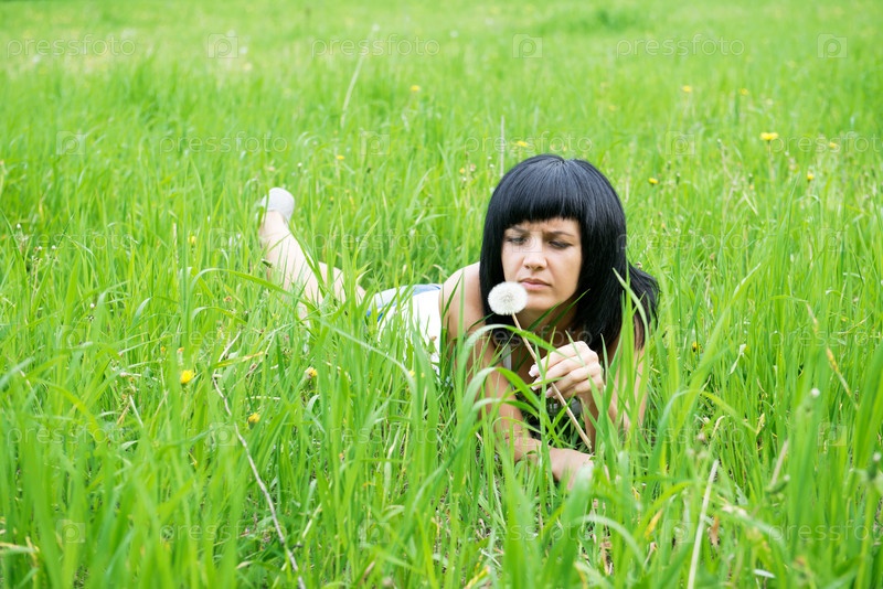 Девушка лежит на траве
