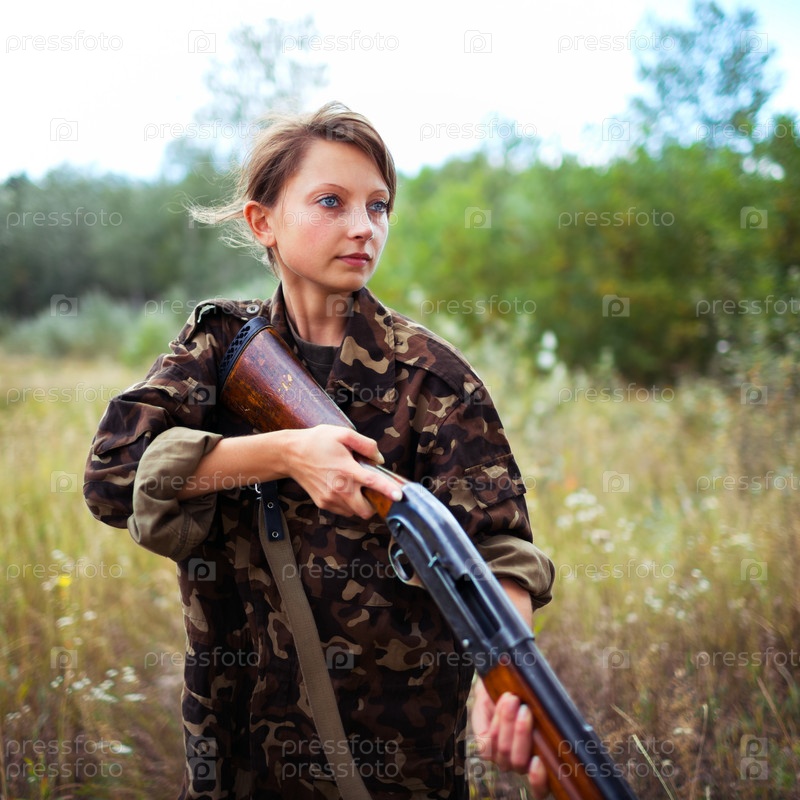 Молодая девушка с дробовиком