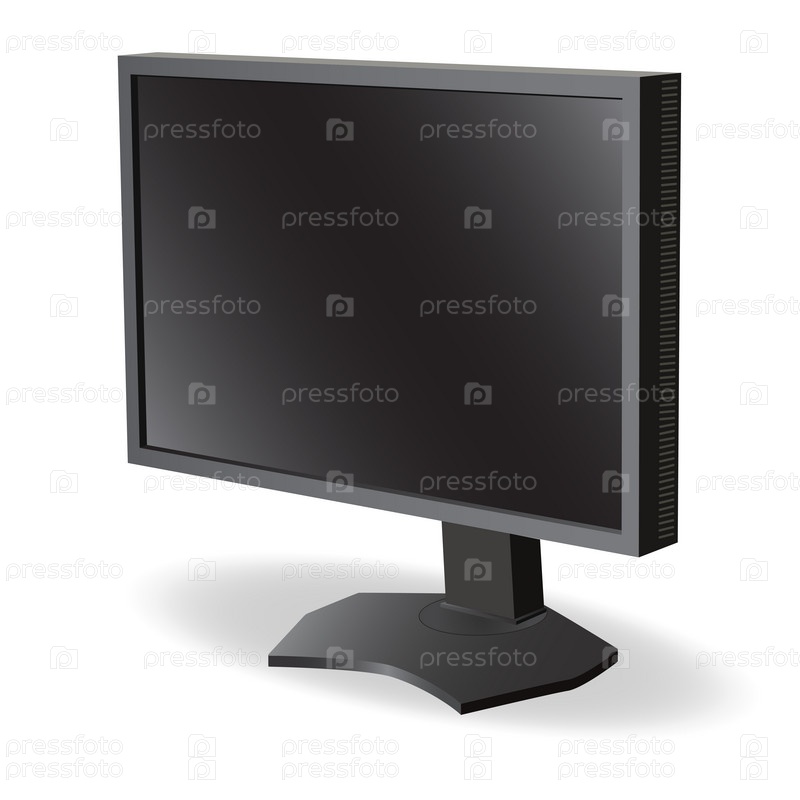 Черный ЖК телевизор на белом фоне. Векторная иллюстрация
