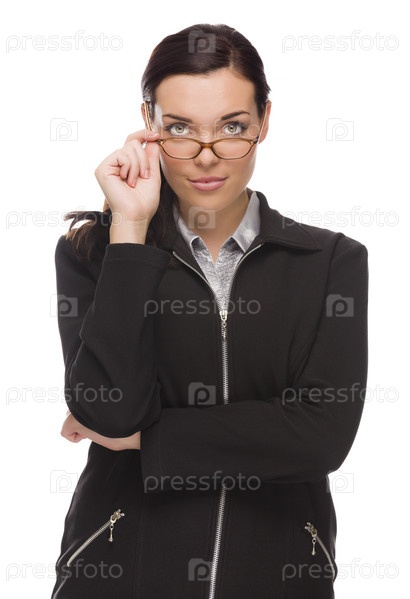 Уверенная деловая женщина поправляет очки
