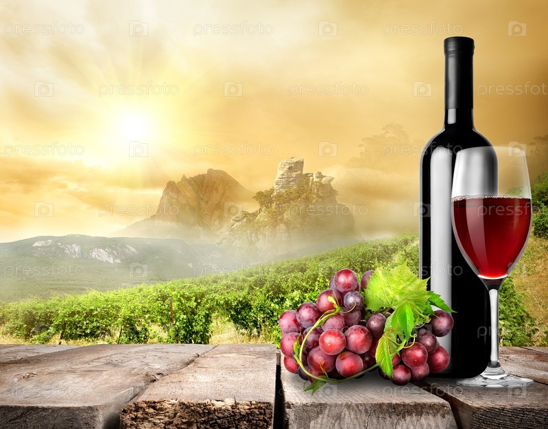 Красное вино и виноградник