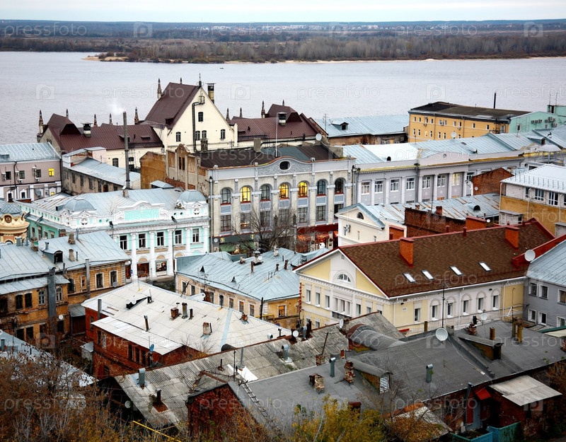 Первые огни в окнах на старинной купеческой улице, Нижний Новгород