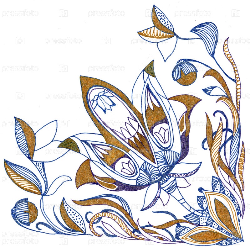 Цветочный орнамент пейсли от руки