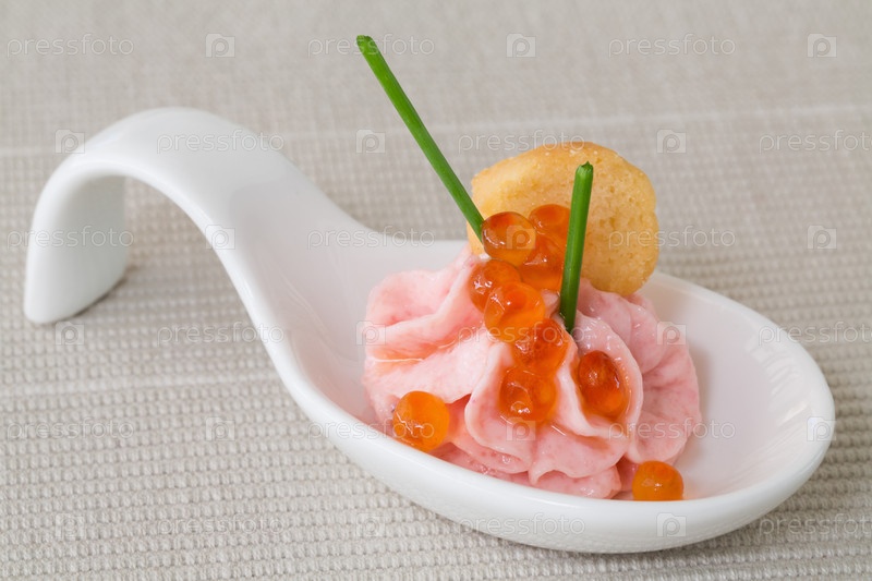 Завтрак с мусом из лосося и красной рыбой в ложке